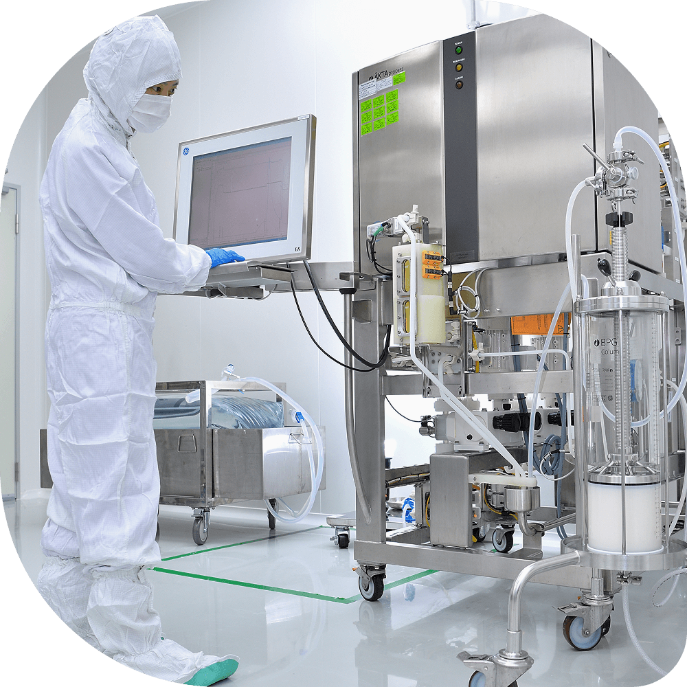Our main manufacturing facility at Central Taiwan Science Park in Taichung City includes a PEG production plant, a biologic drug substance production plant, and an aseptic filling plant. Two Drug Substance (DS) production lines provide capacity to support up to 40,000 patients.